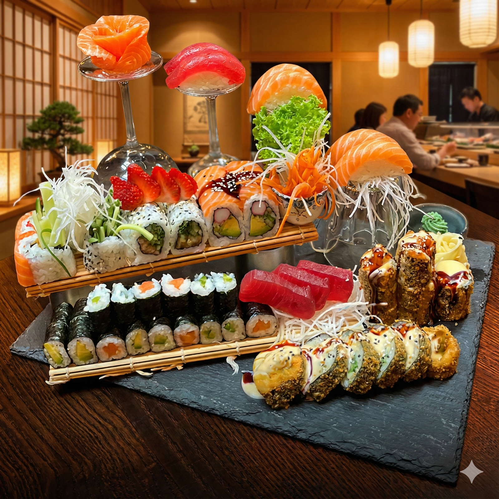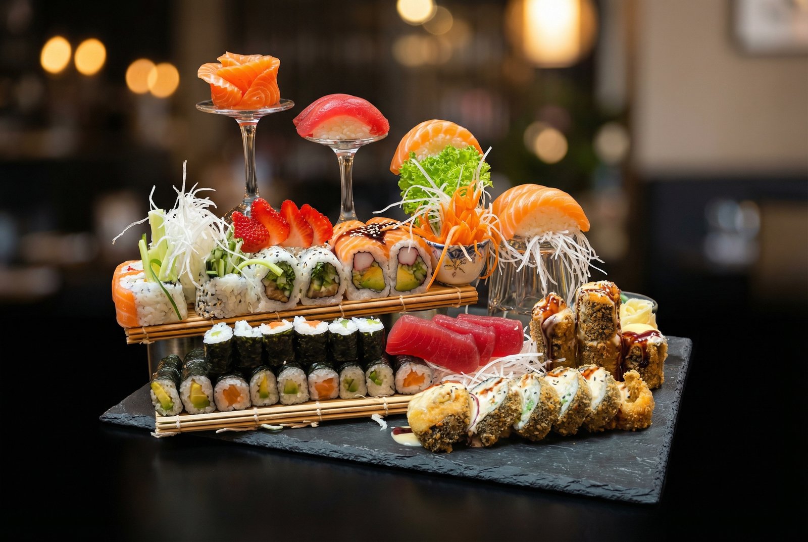 6x Nigiri, 16x Maki, 8x Spezial, 4x Sashimi, 6x Big Crunchy