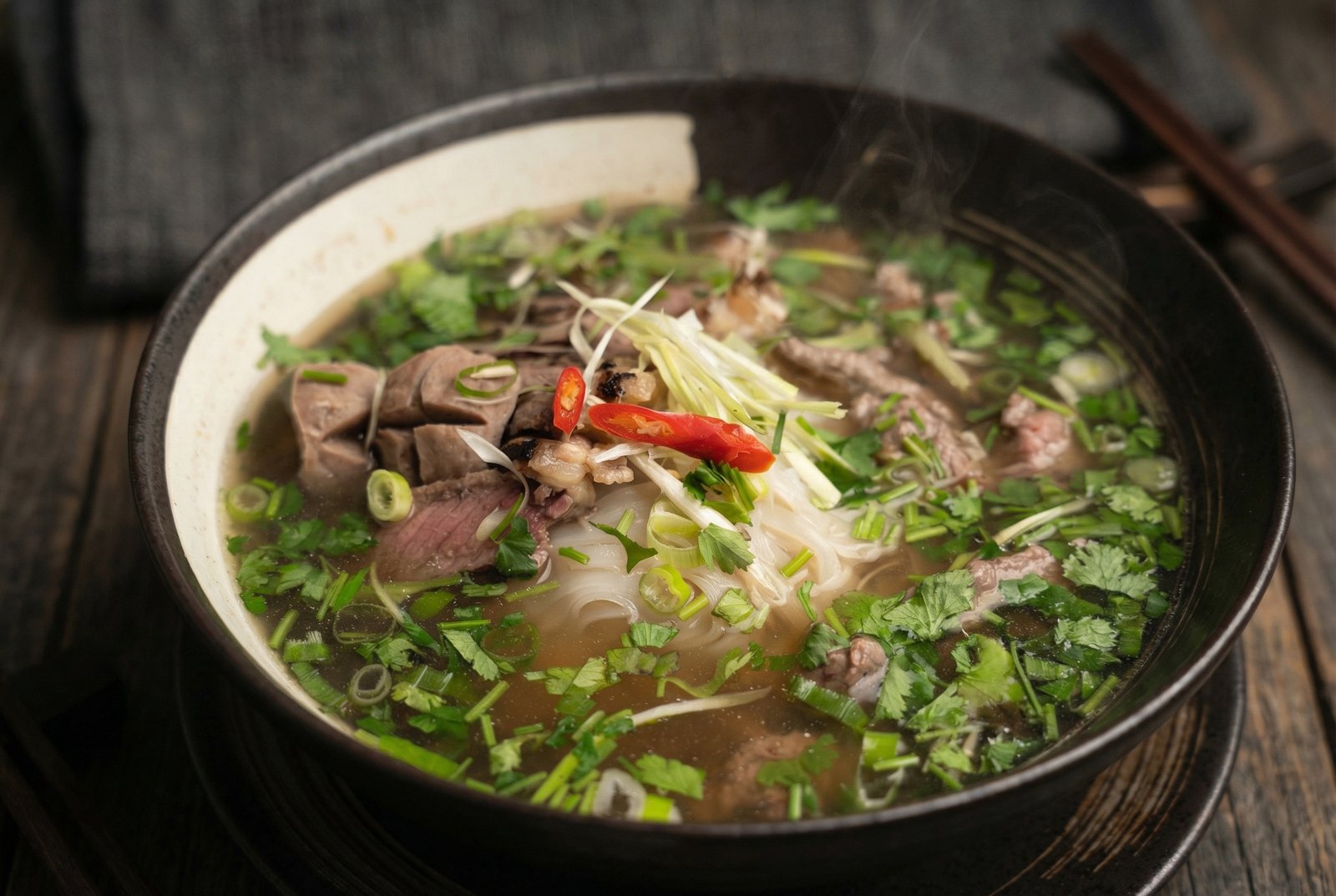 Traditionelle Nudelsuppe nach vietnamesischem Hausrezept mit